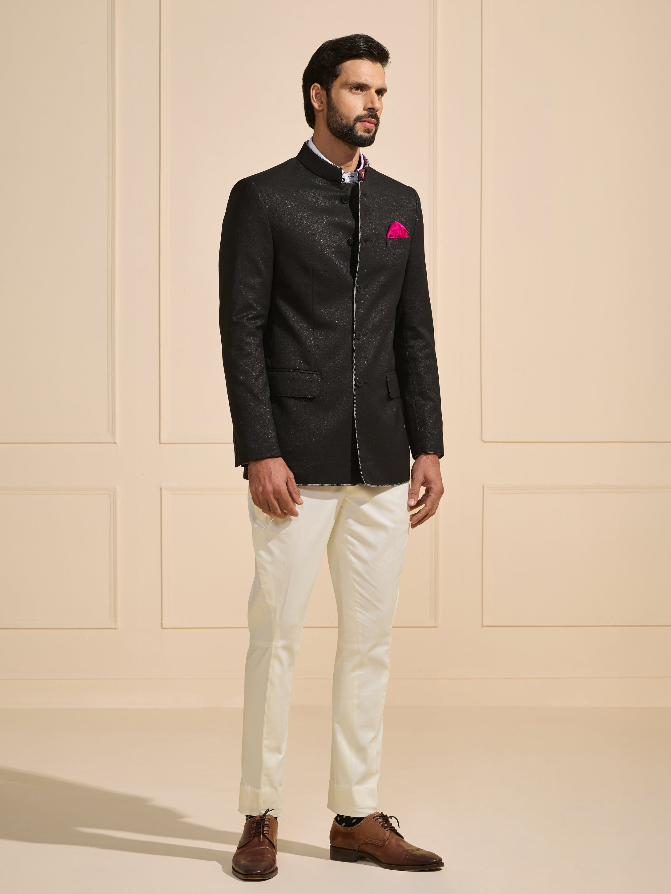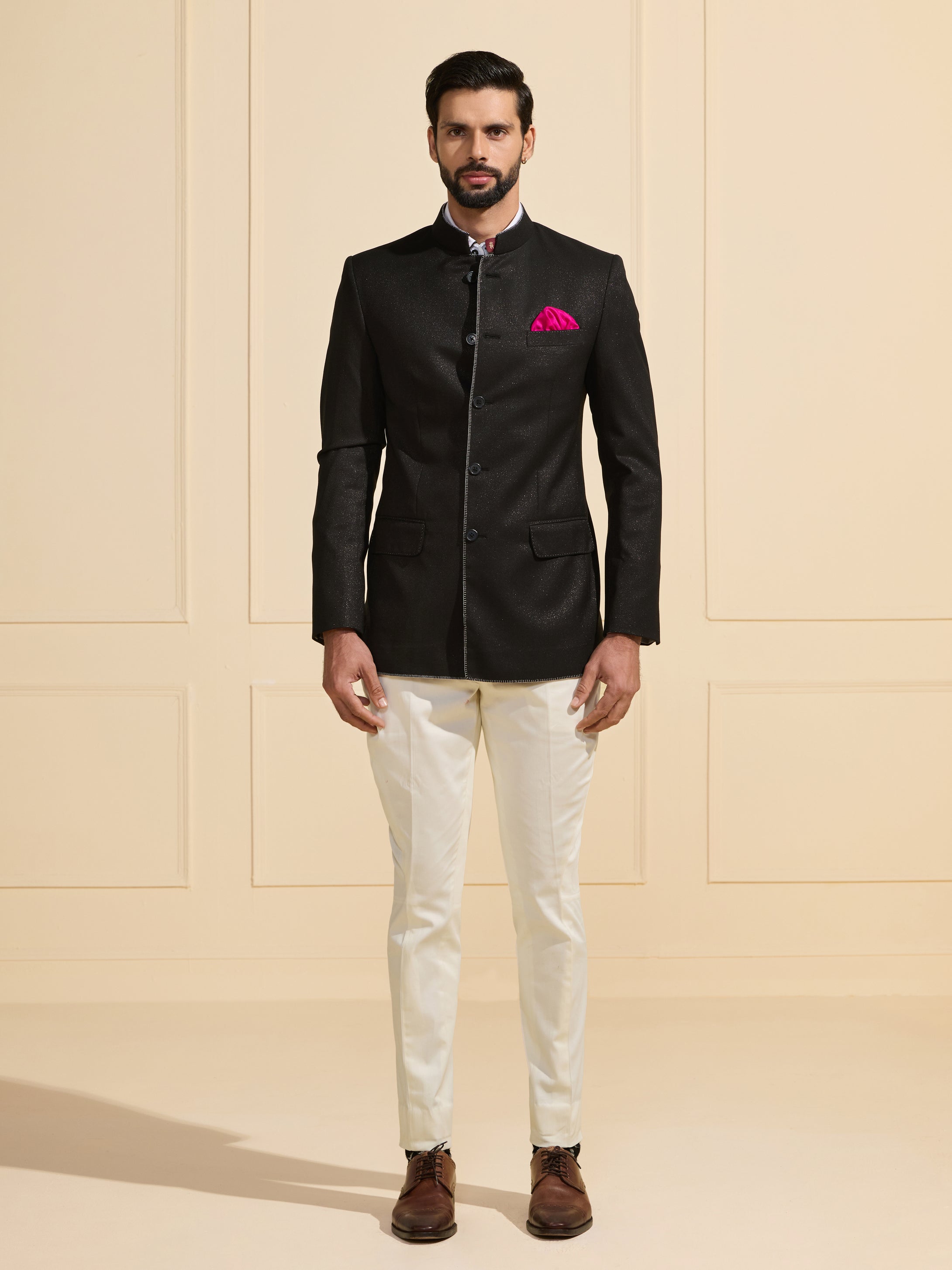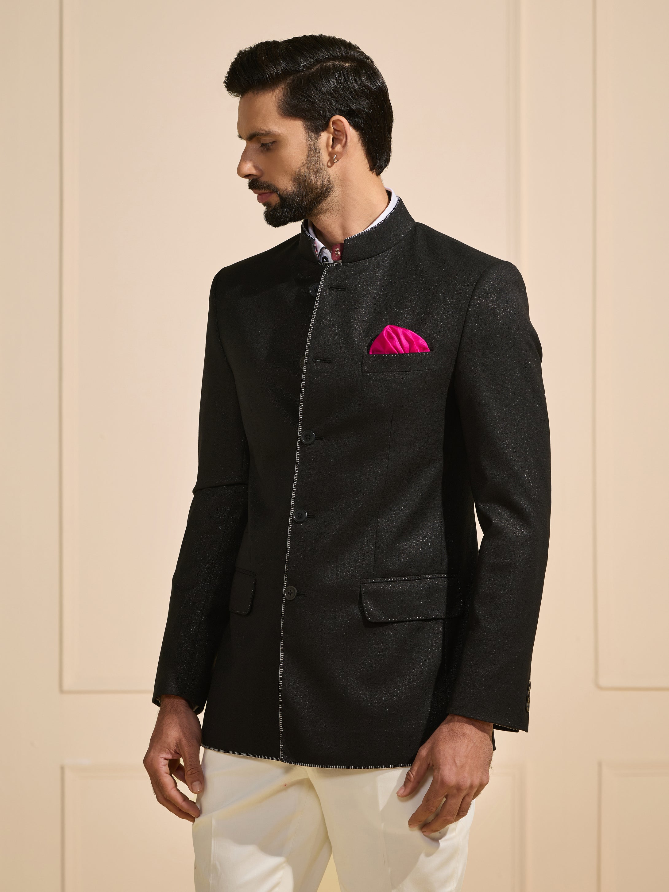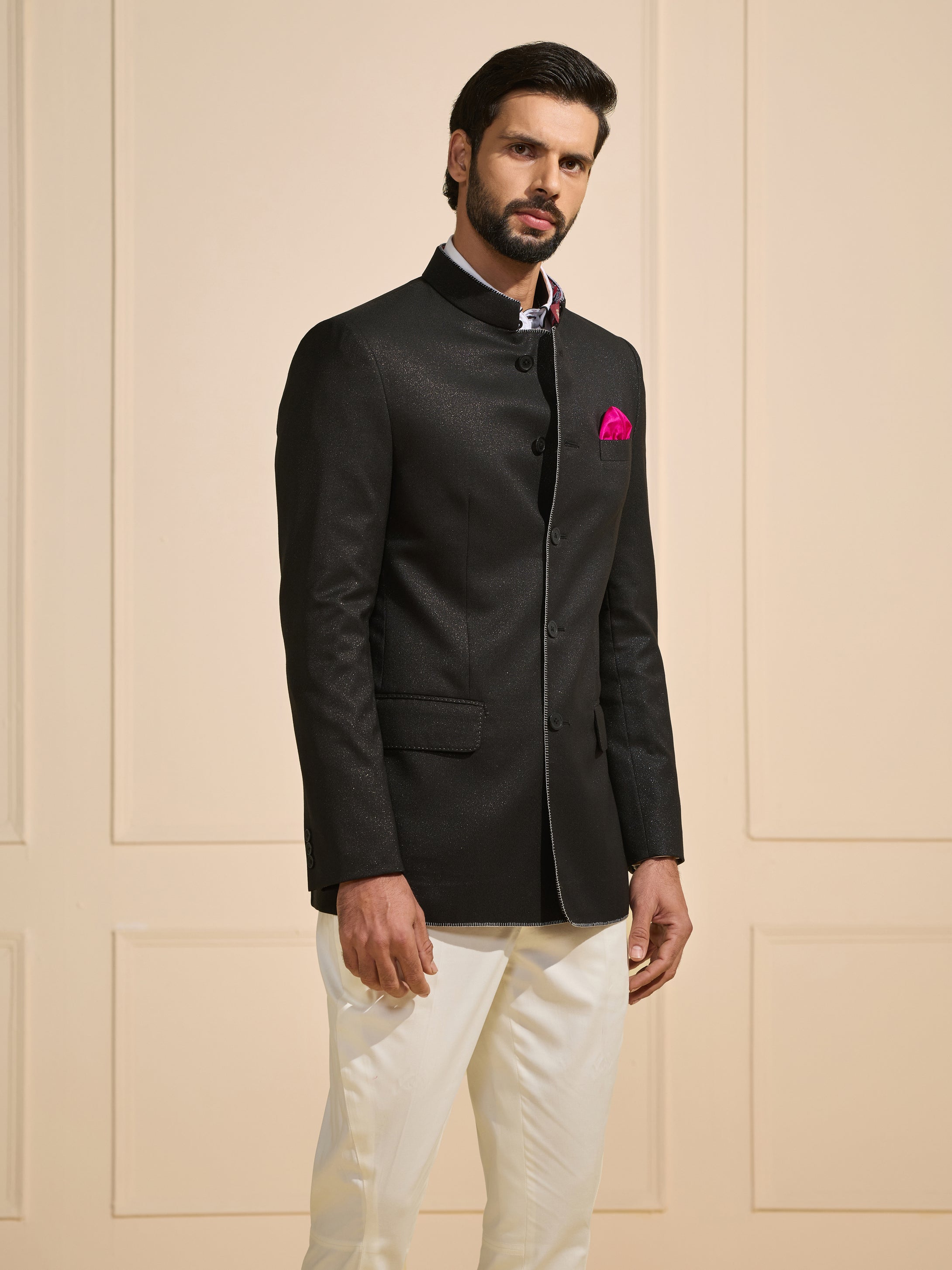JODHPURI OPULENT SHEEN BLACK BANDHGALA