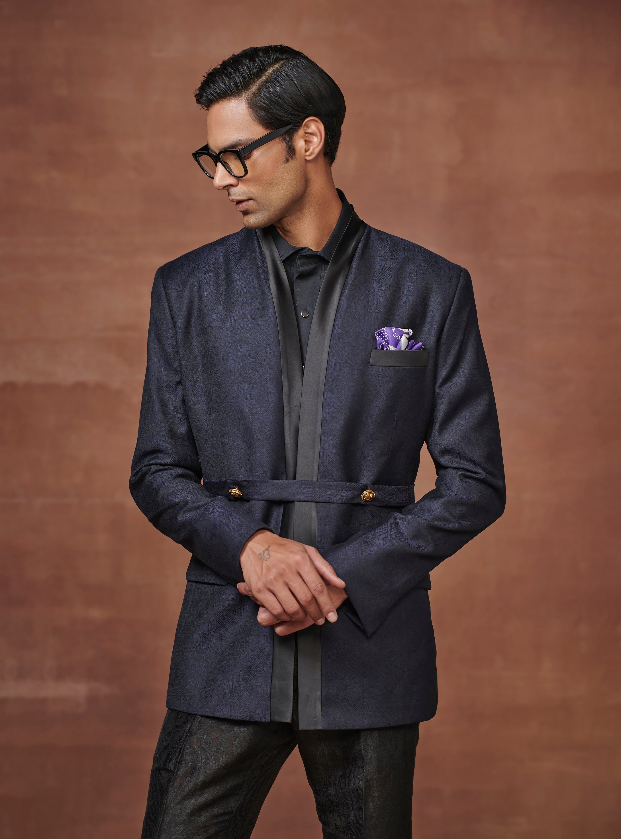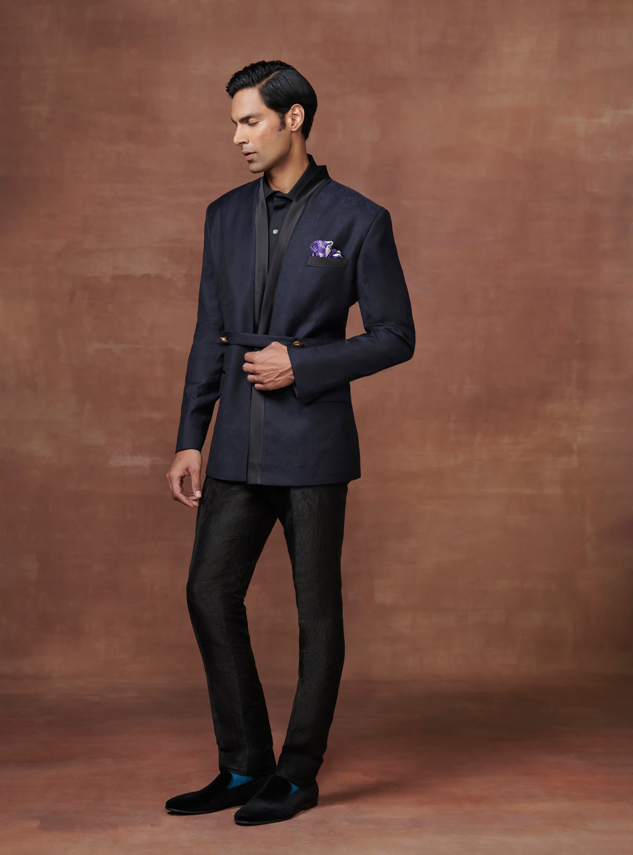 Continue ShoppingROYALE DEEP BLUE BANDHGALA OVERLAPPED JACKET