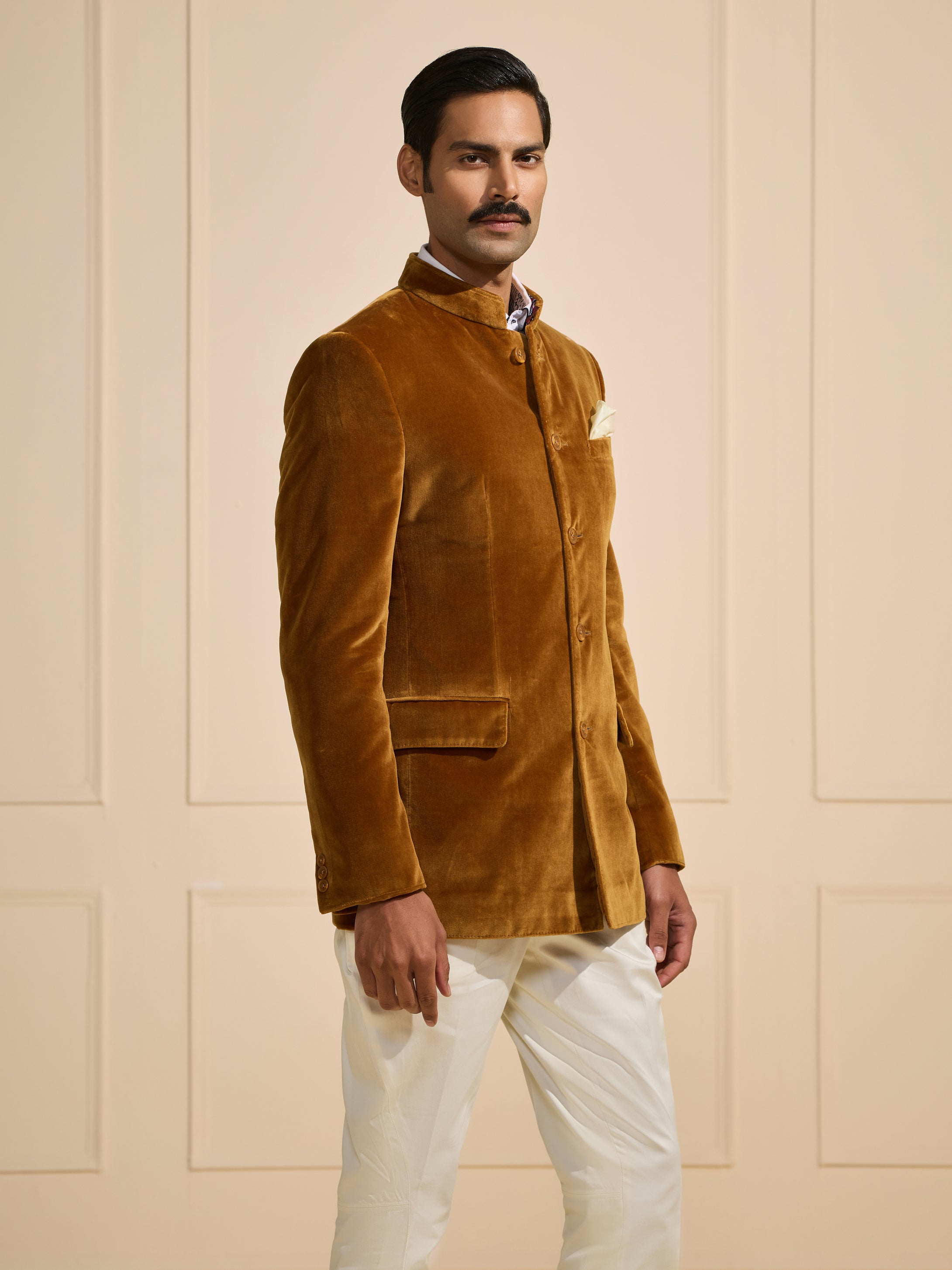 Continue ShoppingTHE REGAL AMBER VELOUR BANDHGALA