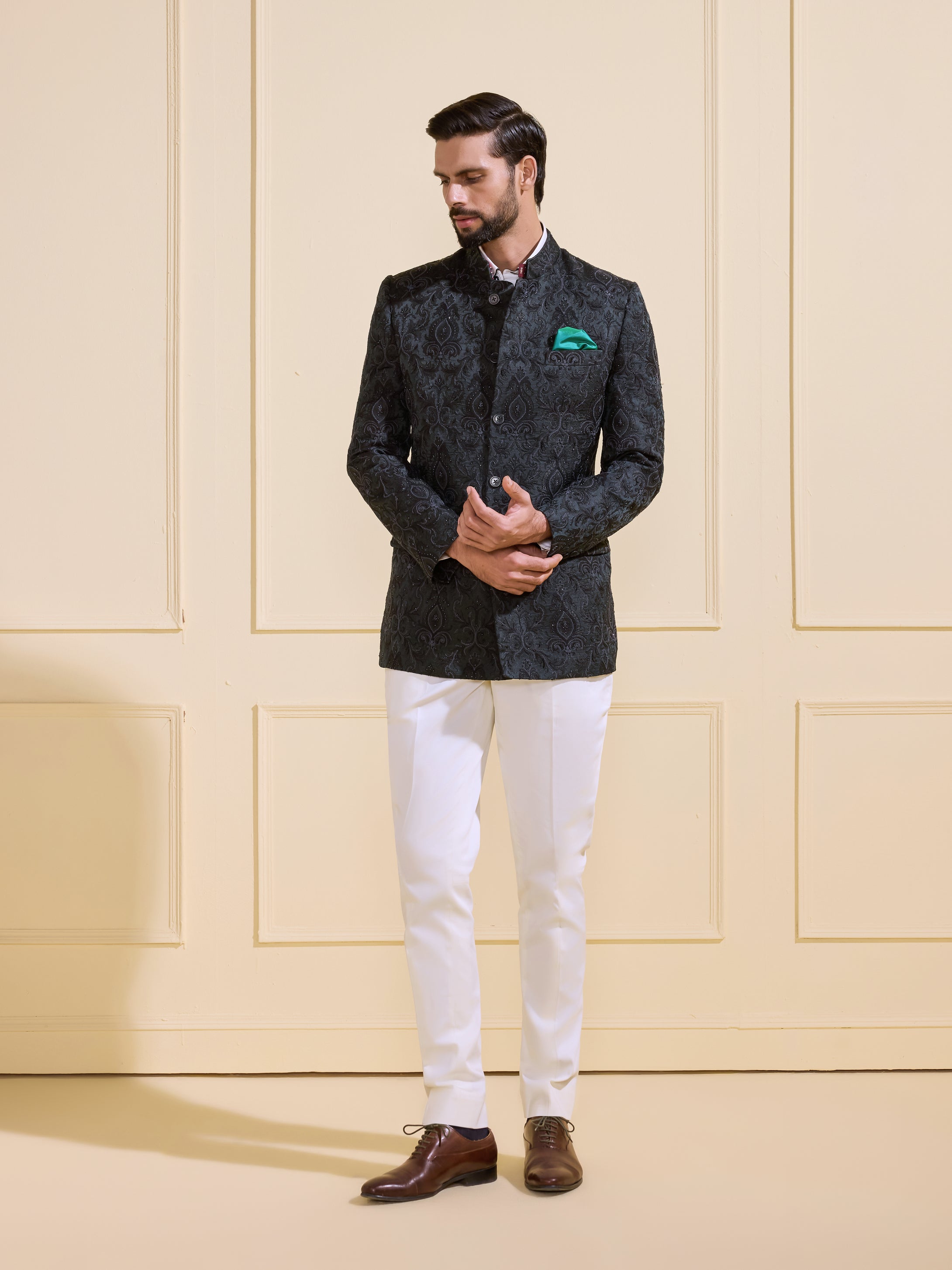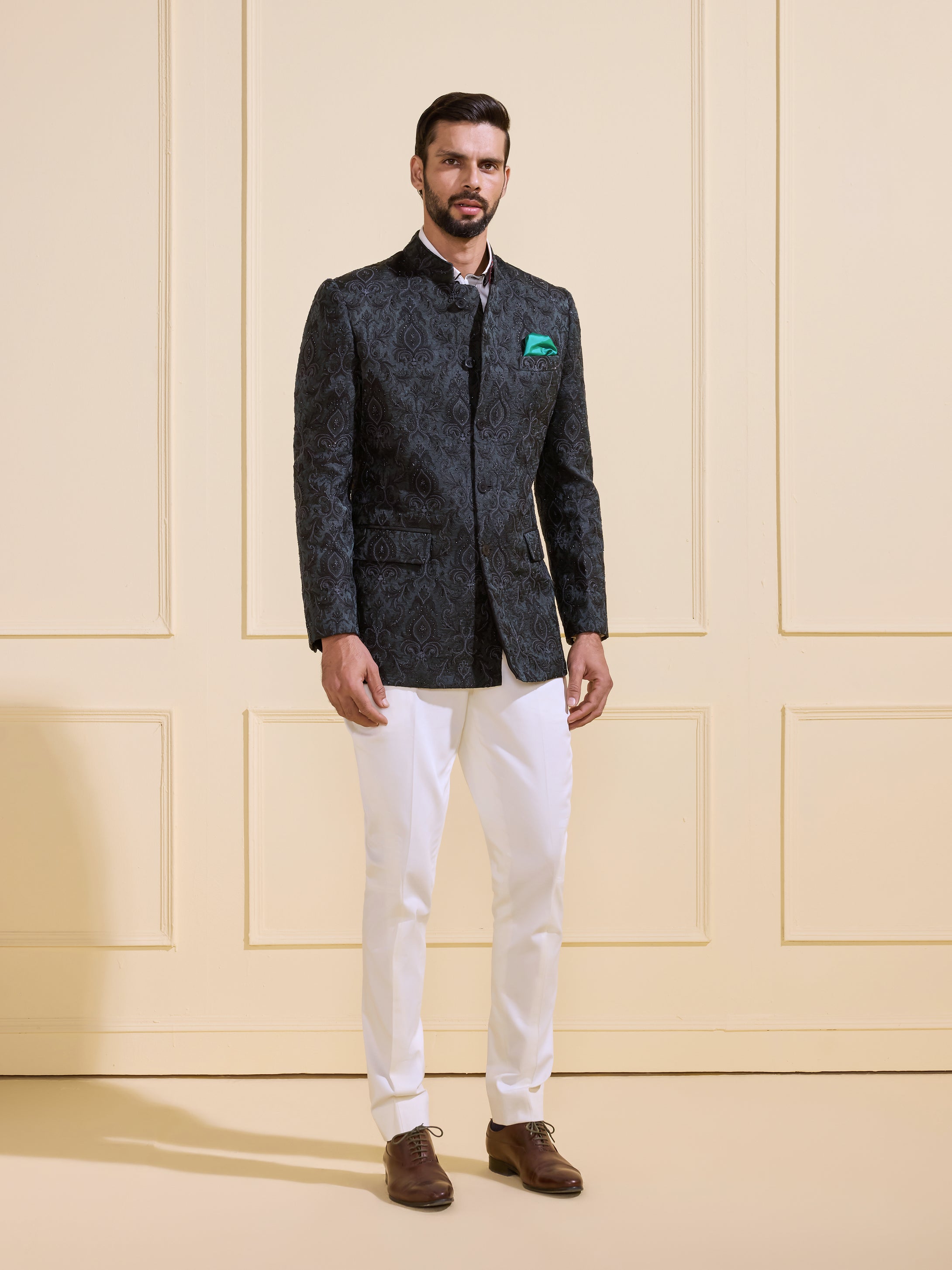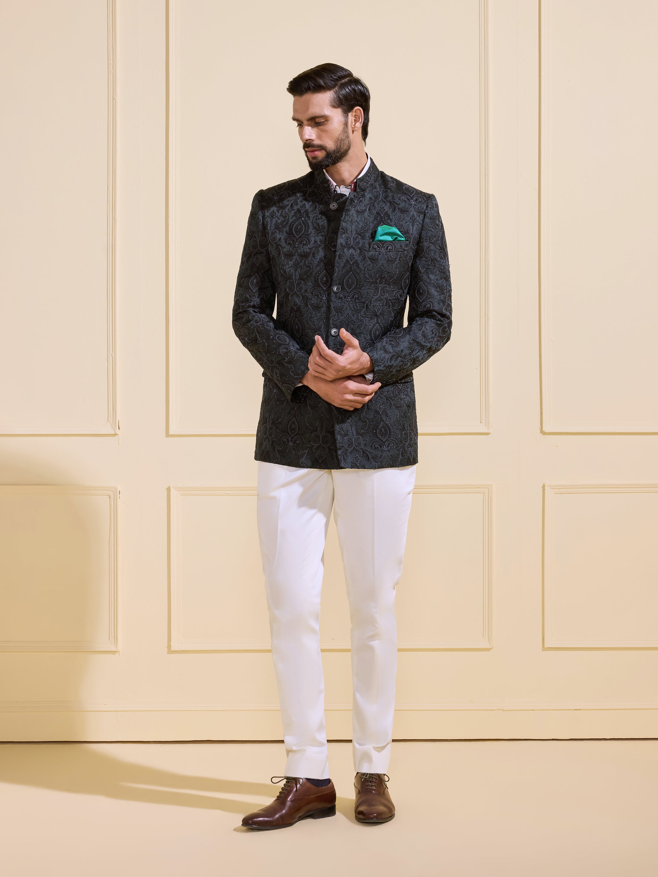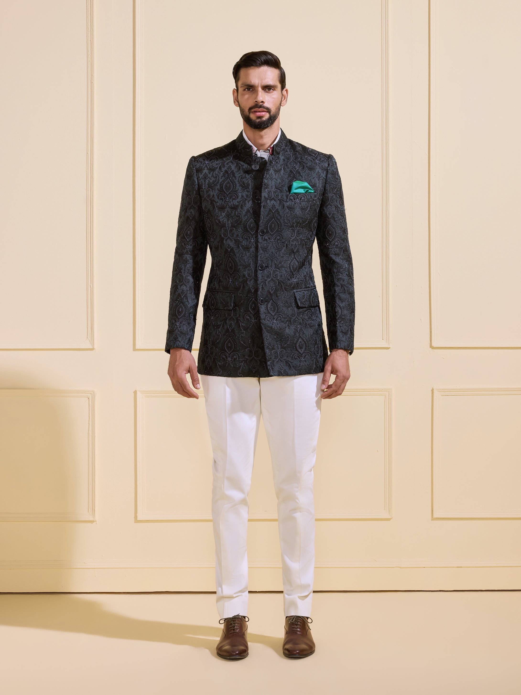 Continue ShoppingTHE SHAHENSHAHI EMBELLISHED NOIR BANDHGALA