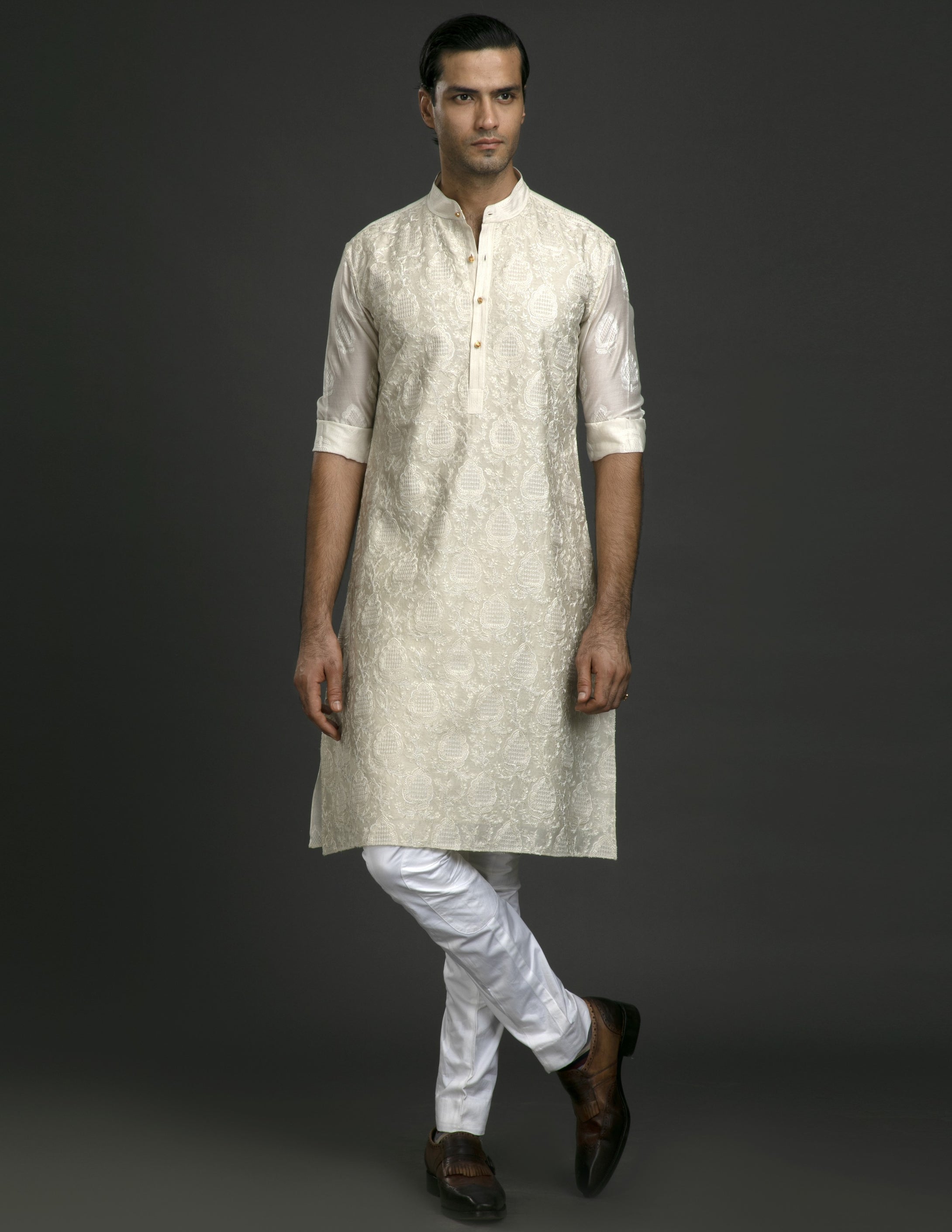 Continue ShoppingWHITE SILK CHANDERI KURTA