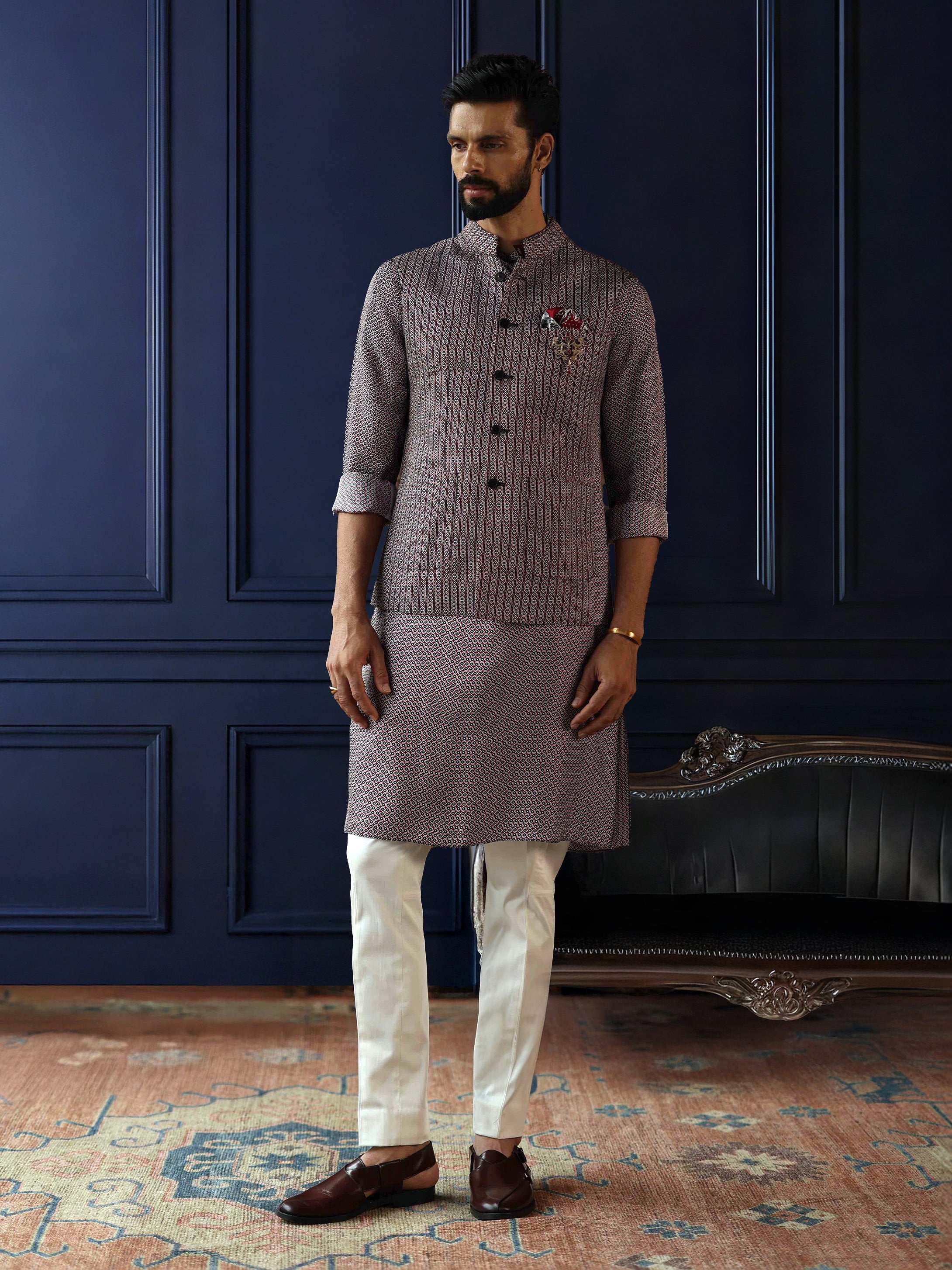 Continue ShoppingGREY GRID TEXTURED WAISTCOAT