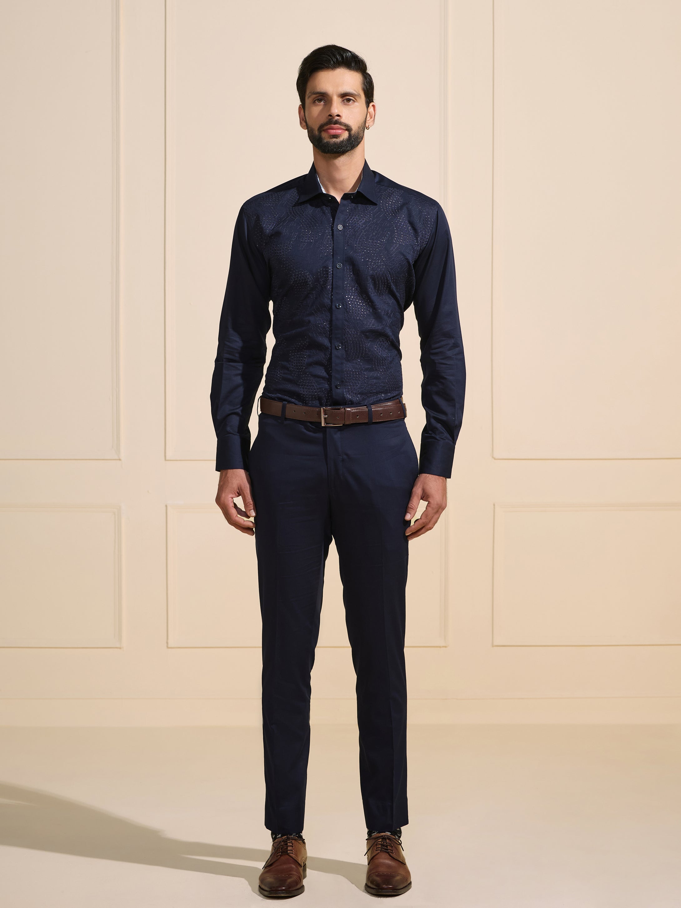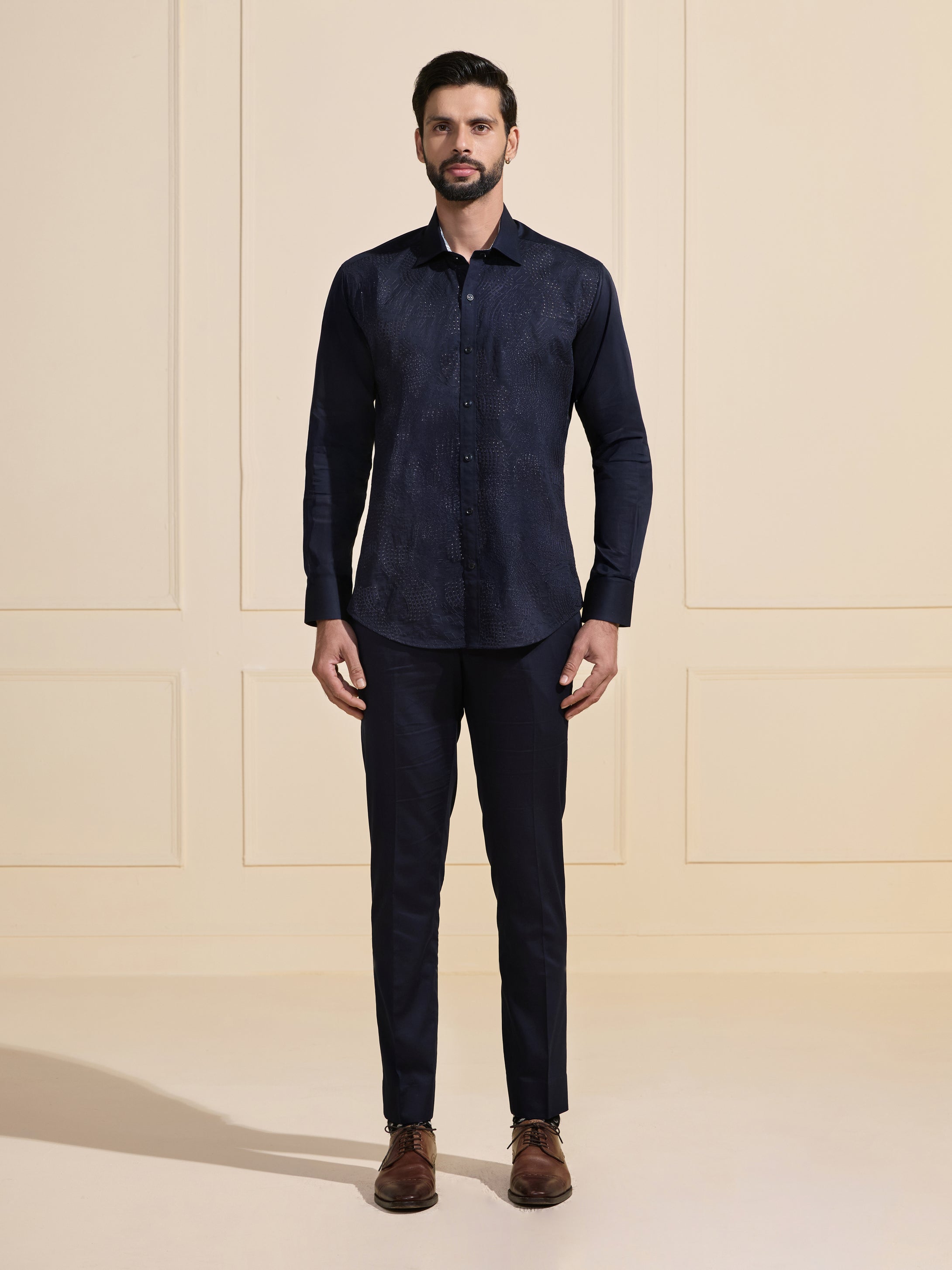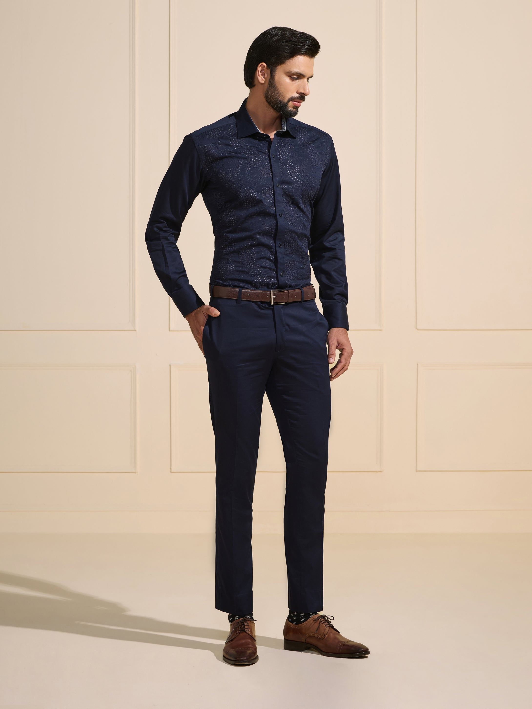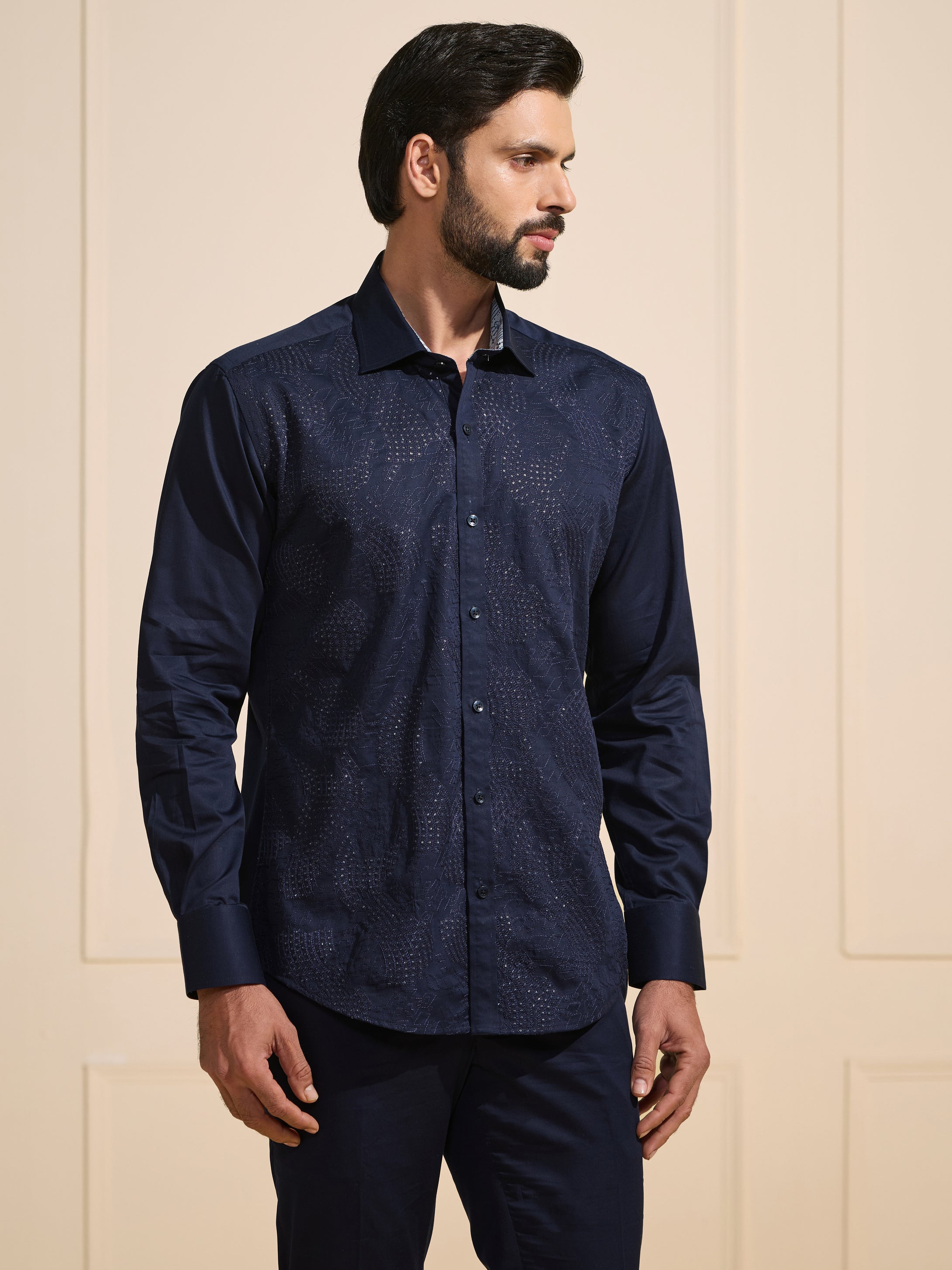 Continue ShoppingTHE MIDNIGHT SPARK: LUXE DARK BLUE SHIRT