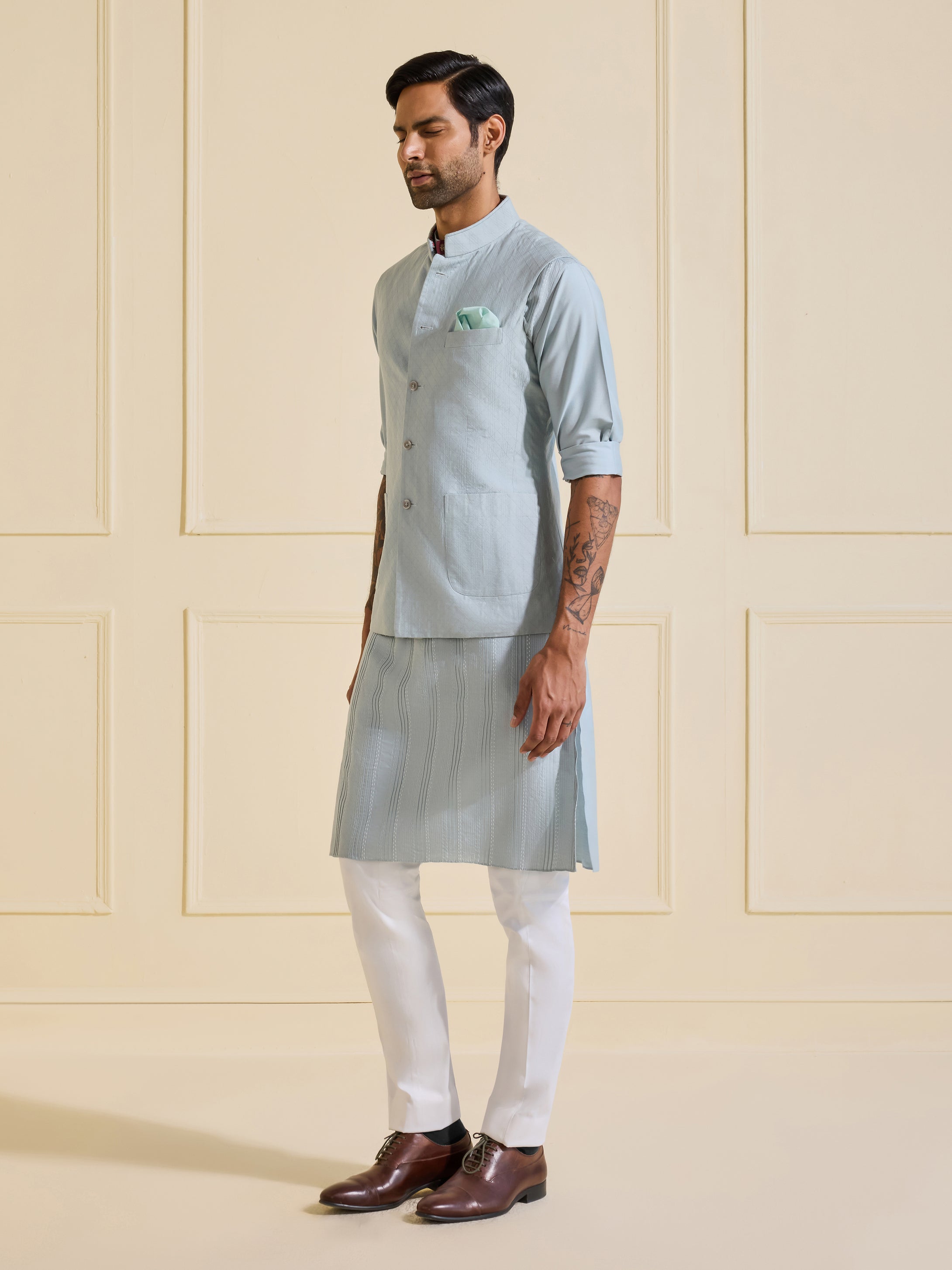Continue ShoppingGLACIAL ESSENCE: THE CLASSIC ICE BLUE WAISTCOAT