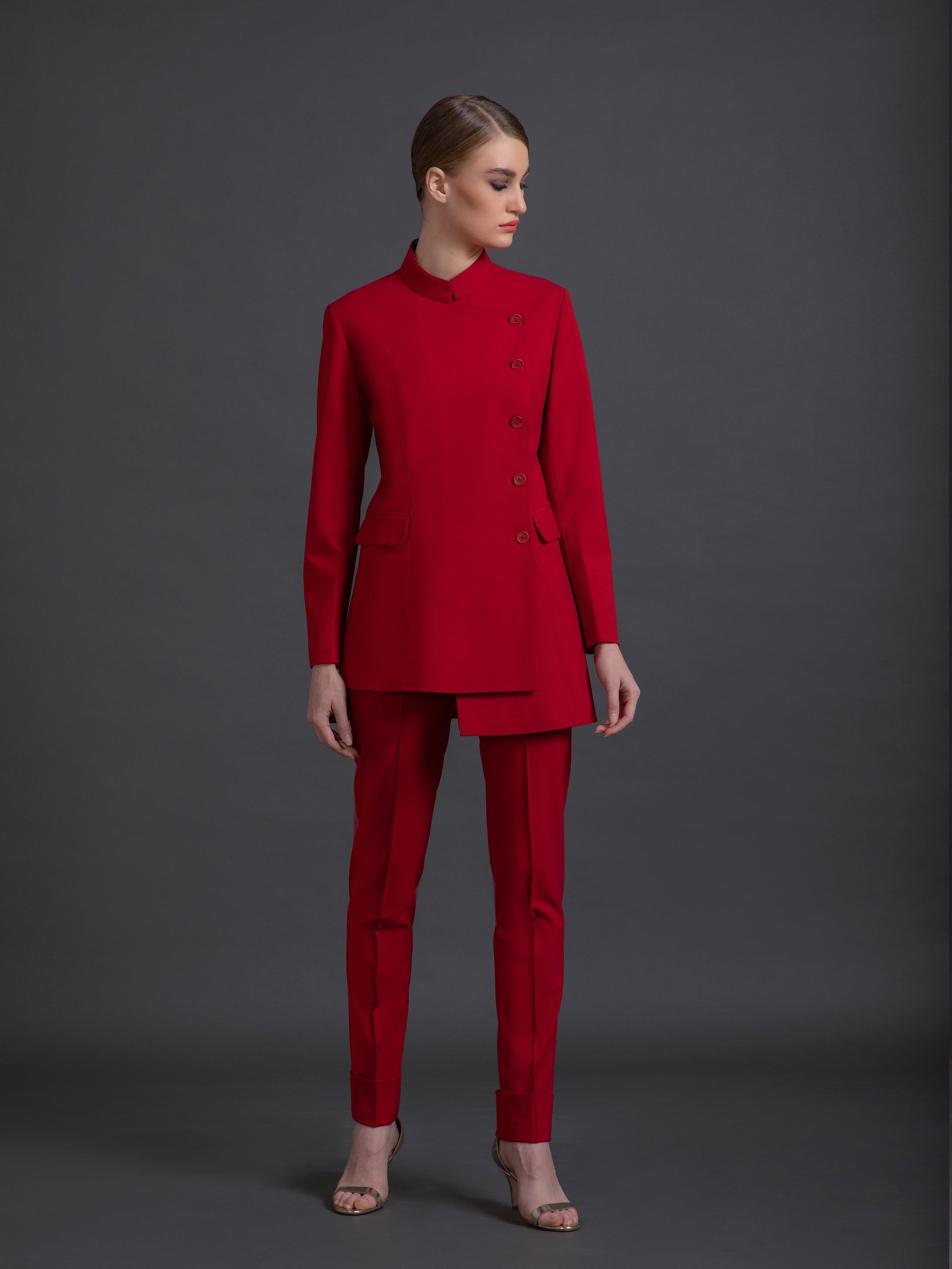 Prices are provided solely for Womens Bandhgala Suit. Please note that accessories, jewelry, buttons, and other items displayed are not part of this purchase.